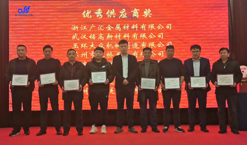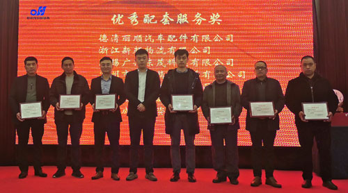 會(huì)上,副董事長(zhǎng)宣成向2019年度優(yōu)秀供應(yīng)商和獲得優(yōu)秀配套服務(wù)獎(jiǎng)的企業(yè)代表頒獎(jiǎng),并合影留念。優(yōu)秀供應(yīng)商代表,浙江廣匯金屬材料有限公司總經(jīng)理沈永躍上臺(tái)作了熱情洋溢的發(fā)言。優(yōu)秀配套服務(wù)獎(jiǎng)代表德清麗順汽車(chē)配件有限公司總經(jīng)理趙國(guó)民上臺(tái)作了熱情洋溢的發(fā)言。