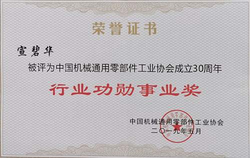 會上,中國機械通用零部件工業協會鏈傳動分會理事長,東華集團董事長宣碧華獲中國機械通用零部件工業協會成立30周年“行業功勛事業獎”。