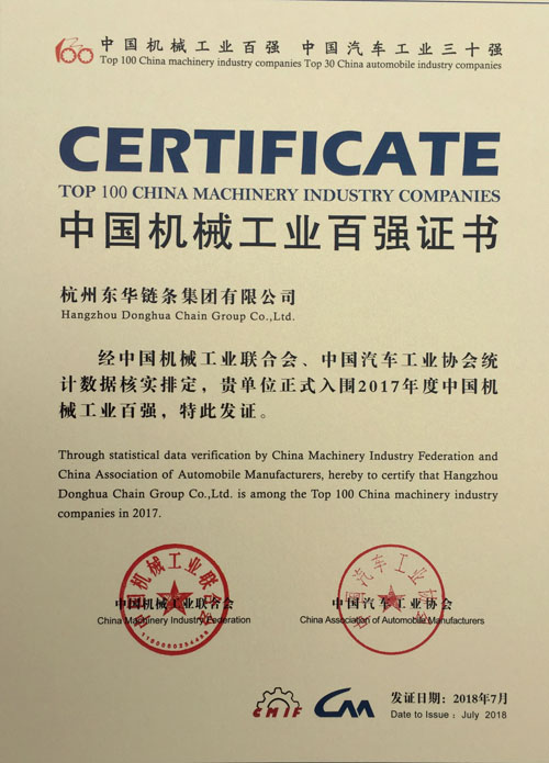 日前,第十四屆中國機械工業(yè)百強企業(yè)信息發(fā)布會在山東臨沂召開。會上發(fā)布了2017年度中國機械工業(yè)百強企業(yè)名單。東華鏈條集團以全年穩(wěn)健上升的經(jīng)營業(yè)績居第56位,比2016年上升6位,這是東華鏈條集團連續(xù)三年榮登中國機械工業(yè)百強榜。