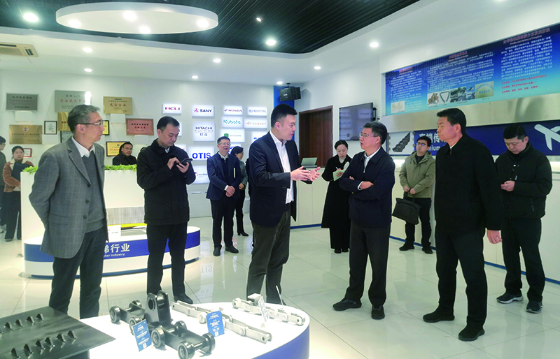 在東華鏈條展廳,調(diào)研組觀看了企業(yè)宣傳片,并參觀了配套于各行業(yè)的高端鏈傳動(dòng)產(chǎn)品。宣成向調(diào)研組詳細(xì)介紹了東華鏈條的全球研發(fā)制造布局、國(guó)內(nèi)外市場(chǎng)拓展、智能制造、精細(xì)化管理、人才隊(duì)伍建設(shè)以及未來(lái)發(fā)展規(guī)劃。