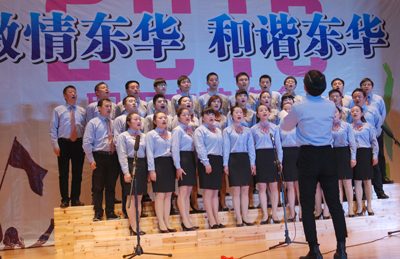 晚會(huì)主題為《激情東華,和諧東華》,這是一臺(tái)完全由員工自編自導(dǎo)自演的自?shī)首詷?lè)性質(zhì)的晚會(huì),節(jié)目豐富多彩,有獨(dú)唱、大合唱、舞蹈、相聲、小品、詩(shī)朗誦、戲劇表演等共23個(gè)節(jié)目,中間穿插了觀眾抽獎(jiǎng)等環(huán)節(jié)。