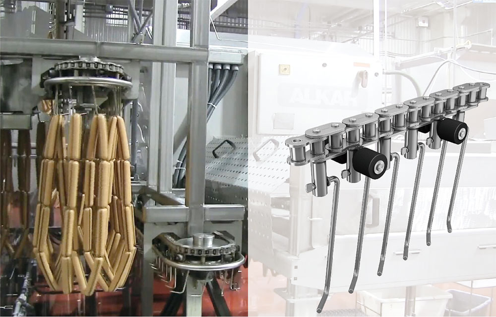 ● 香腸加工、冰激凌生產、乳業灌裝等設備用鏈條:具有耐腐蝕、清潔衛生等特點;