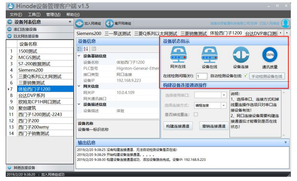 1.客戶(hù)端正常上線(xiàn),網(wǎng)關(guān)及設(shè)備圖標(biāo)上線(xiàn),指示燈亮,如圖,最小化窗口即可(不能關(guān)閉客戶(hù)端)。