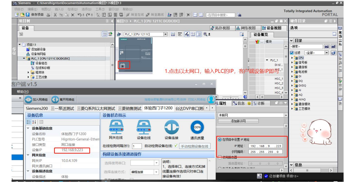 3.點(diǎn)擊組態(tài)界面,以太網(wǎng)接口,輸入PLC的IP地址(客戶(hù)端的設(shè)備IP即是,如圖192.168.9.223)。