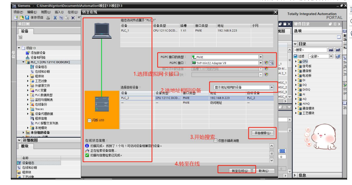 5.上載及下載程序,如下圖(博圖版本與程序需要一一對(duì)應(yīng),不同的版本及程序存在不兼容的情況,用戶(hù)使用請(qǐng)注意版本跟程序兼容)。