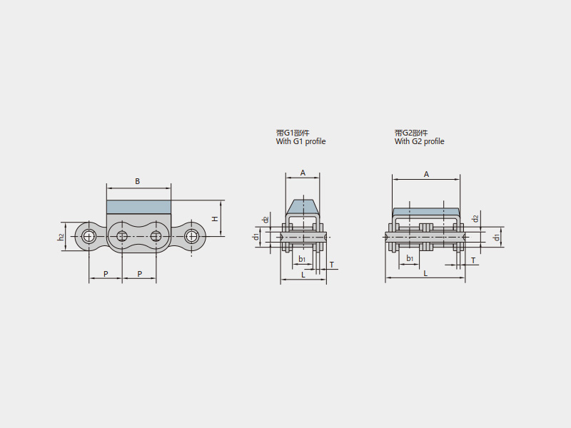 ● 橡膠附板鏈?zhǔn)窃跇?biāo)準(zhǔn)短節(jié)距精密滾子鏈作為基鏈的基礎(chǔ)上加裝橡膠頂板的鏈條,基鏈符合ISO、ASME/ANSI、DIN、JIS等標(biāo)準(zhǔn);