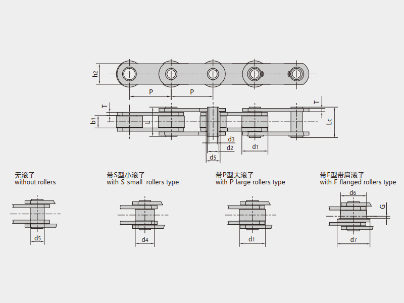 | 帶S型小滾子 | 帶P型大滾子 | 帶F型帶肩滾子 |