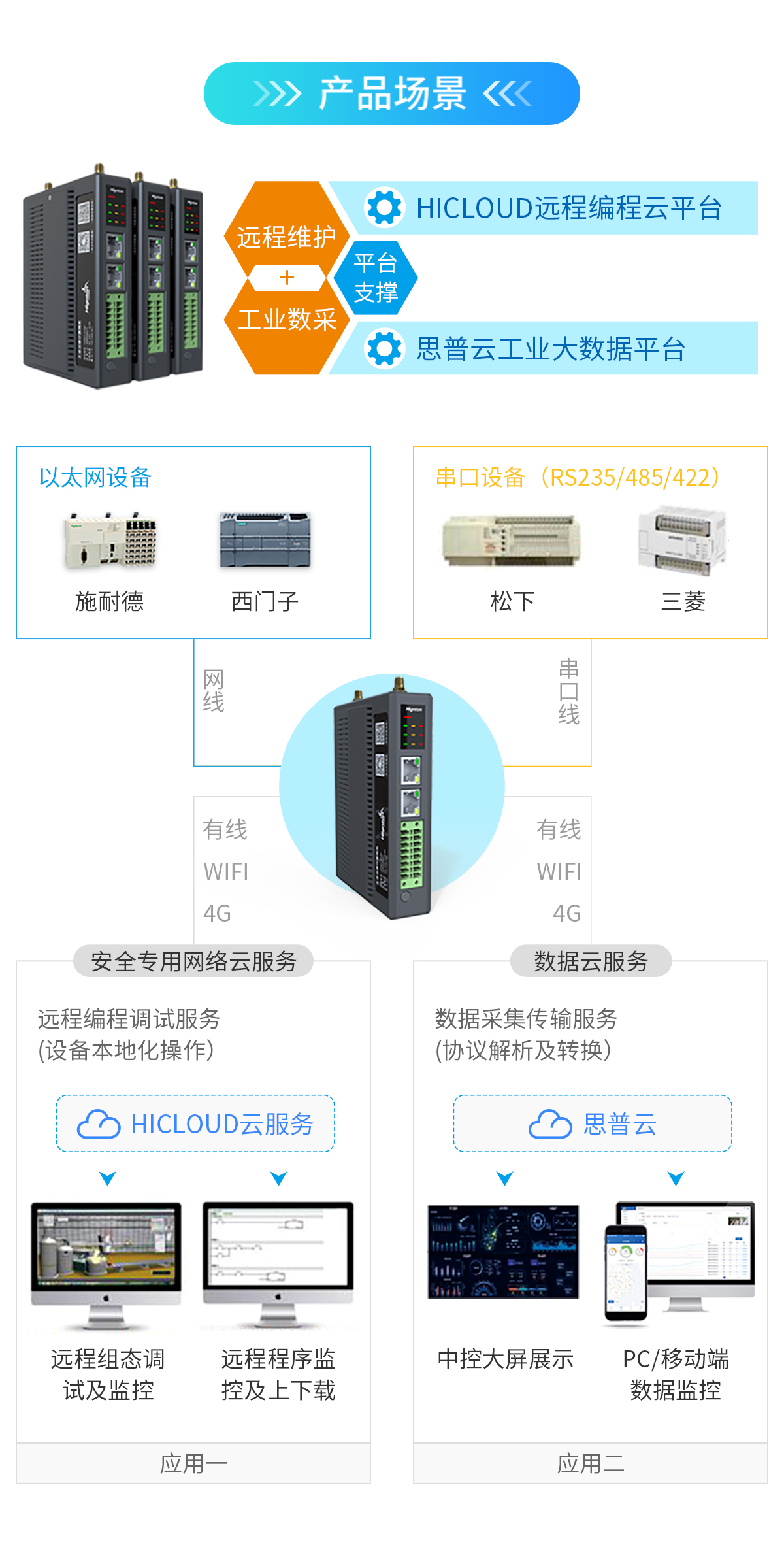 網(wǎng)關(guān)可以采集PLC數(shù)據(jù),然后通過MQTT協(xié)議上傳到平臺,通過我們的思普云平臺可以實現(xiàn)對設(shè)備運行狀態(tài)和數(shù)據(jù)的監(jiān)控。