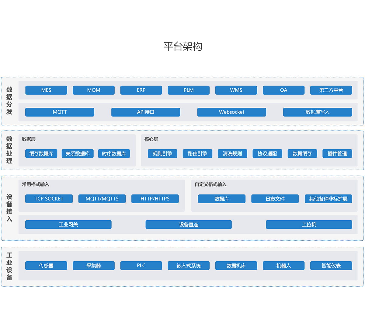通過安裝在設(shè)備終端的數(shù)據(jù)采集器(數(shù)采網(wǎng)關(guān)),可以實(shí)現(xiàn)對碼垛機(jī)的各項(xiàng)參數(shù)自動采集。同時(shí),我們還會針對客戶需求進(jìn)行數(shù)據(jù)的采集間隔設(shè)定,確保數(shù)據(jù)采集的準(zhǔn)確性和實(shí)時(shí)性。同時(shí),我們還可以實(shí)現(xiàn)采集到的數(shù)據(jù)上傳到云端智能平臺,為客戶提供全方位的數(shù)據(jù)管理支持。